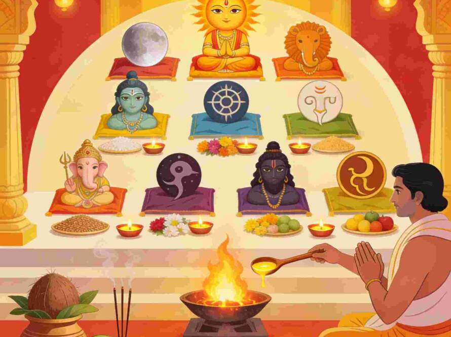 Introduction to Navgraha Puja Navgraha Puja is an important and powerful Vedic ritual performed to worship the nine celestial planets (Navgrahas) that govern human life according to Vedic astrology (Jyotish…