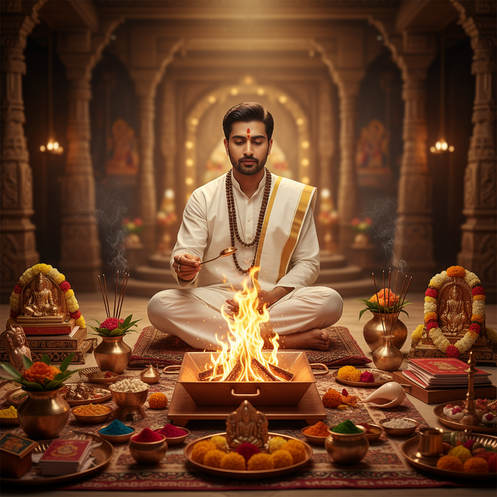 Through this website, you can gain benefits and merit by performing any type of Vedic worship, Vedic havan, Vedic yajna, katha, shraddha, cow service, charity, and Brahmin feeding, either online or offline. Performing Vedic yagnas and other religious activities brings positive energy into a person's life.